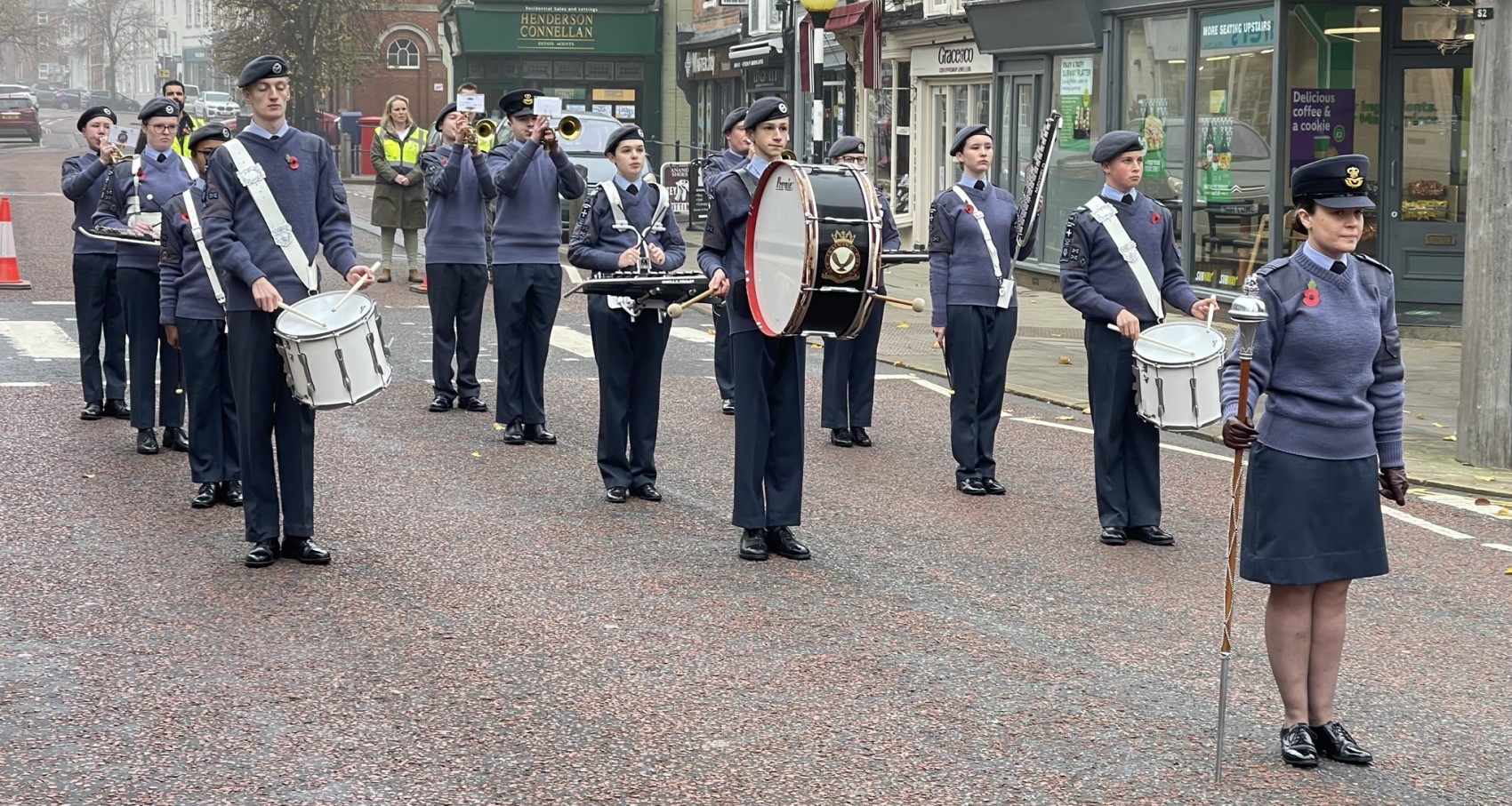 Ably directed by our temporary Drum Major and Commanding Officer (Fg Off Greaves) our band gave up their afternoon and headed up the Oakham parade, leading groups of regular and reserve forces, and many youth groups of Oakham through the towns streets from the castle to the church.