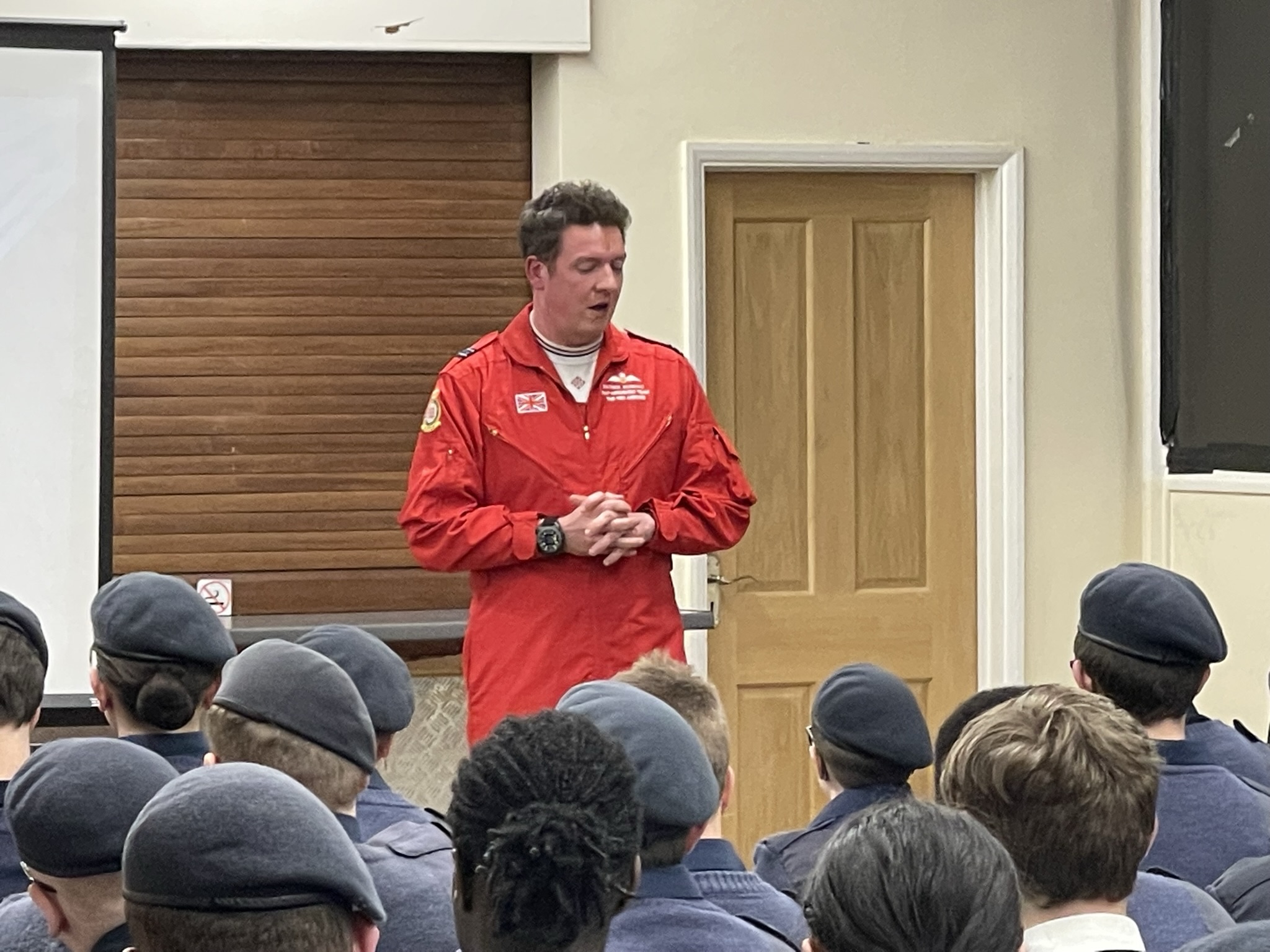 Flight Lieutenant Kershaw said of the evening "It is always an honour and a privilege to meet cadets across the RAFAC organisation. Their interest in the Royal Air Force, and the Red Arrows team always makes for a fun and interesting talk, and their questions are often challenging, but rewarding to answer. I thoroughly enjoyed meeting the cadets from Corby, Market Harborough, Daventry and Kettering, and it is my hope that a visit from serving members of the Red Arrows and wider armed forces will inspire these cadets; who are very much the future of the country; to strive to reach their goals, and let nothing stand in their way. Their enthusiasm and dedication shines through, and the commitment of the volunteers who lead them can only serve to better their futures and inspire the next generation going forward".